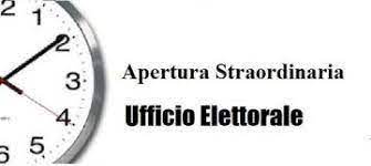 Si comunica a tutta l’utenza che L’ufficio Elettorale rimarrà aperto SOLO PER ADEMPIMENTI ELETTORALI nei seguenti giorni :
