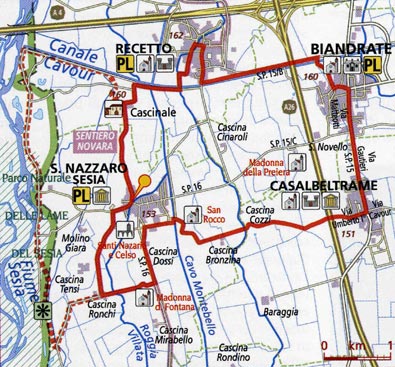 | Features | Lunghezza: 12 Km (21.5 con visita alla sponda del Sesia) Fondo: asfaltato, sterrato Traffico: promiscuo |