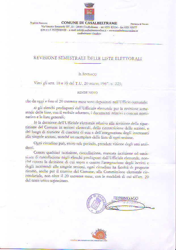 | Descrizione | REVISIONE SEMESTRALE LISTE ELETTORALI |