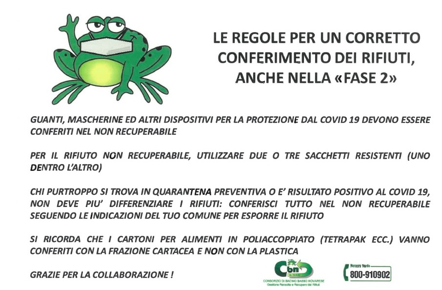 REGOLE / ISTRUZIONI PER IL CORRETTO SMALTIMENTO DEI RIFIUTI NEL PERIODO DELL'EMERGENZA COVID-19.